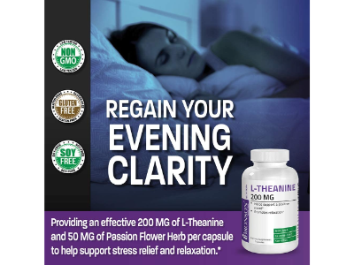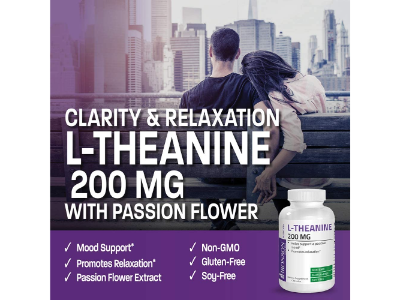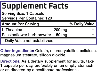 Bronson L-Theanine 200mg (Double-Strength) with Passion Flower Herb, 120 Capsules