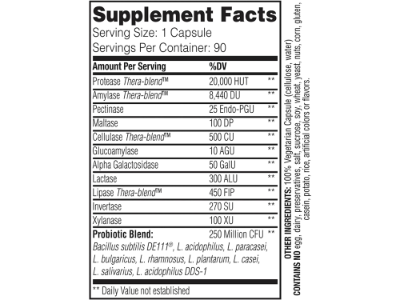 Small Capsule, Big Support: One easy-to-swallow, small capsule with every meal provides enzymes to digest proteins, carbohydrates, dairy, fats and fibers; enhanced with shelf-stable probiotic cultures.