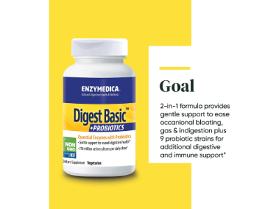 Enzymedica, Digest Basic + Probiotics, 750 Million CFU, Vegetarian, Non-GMO, 90 Capsules (90 Servings).