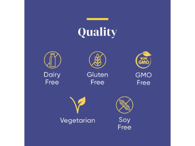 Purity Promise: Contains no gluten, milk, casein, soy, egg, artificial colors, flavors or GMOs; Vegetarian.