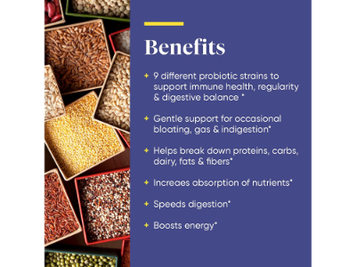 Gentle and Effective: This gentle, broad-spectrum formula is powered by Thera-blend enzymes and 750 million CFU of probiotic strains to boost digestion and support immune health.